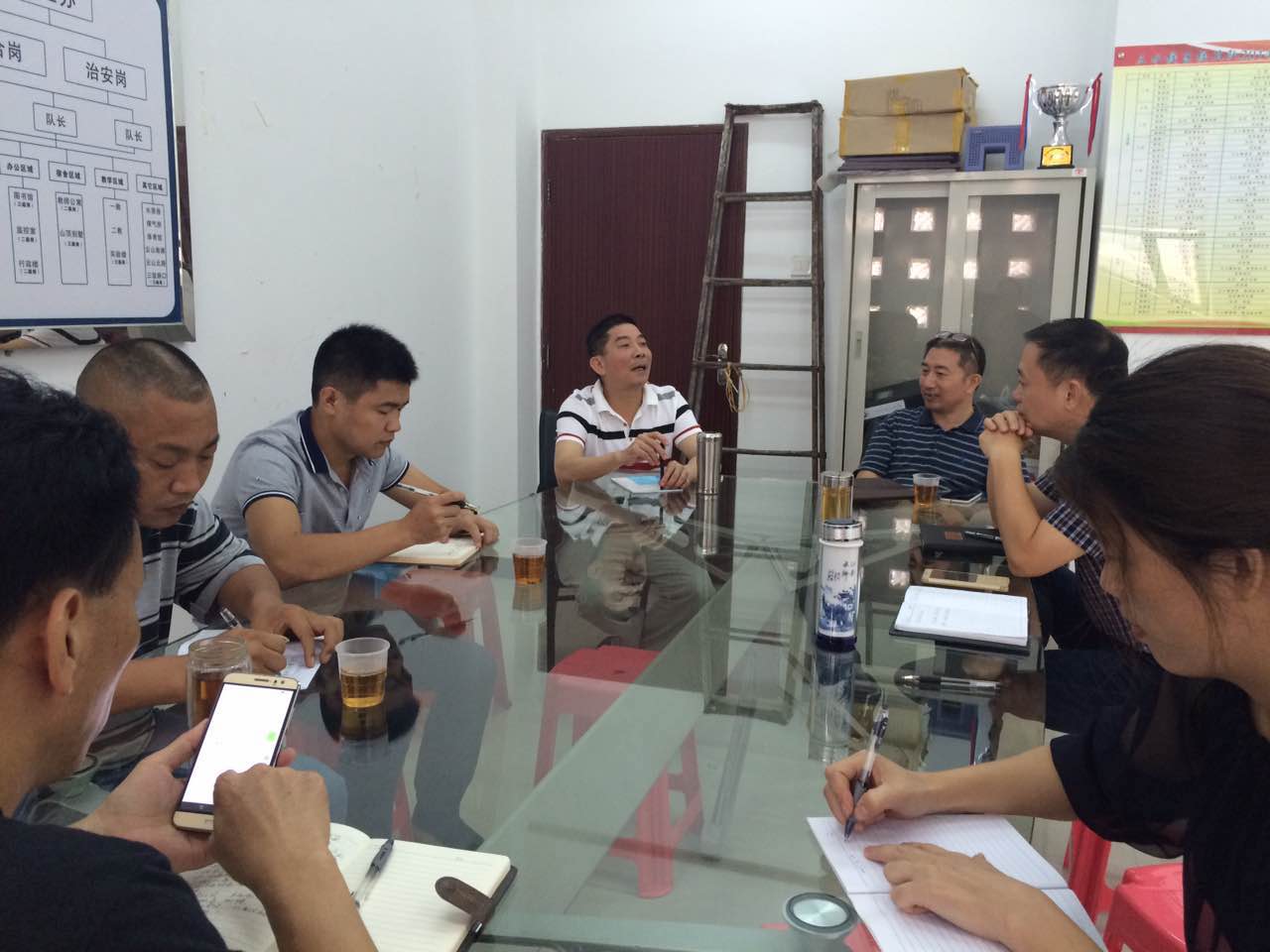 6月22日,佛山三水校区管委会常务副主任谢访春在保卫办217会议室召开校区安全保卫工作会议,管委会副主任柳国斌、保卫办主任方彤彤、保卫干部和校卫队队长参加了会议。