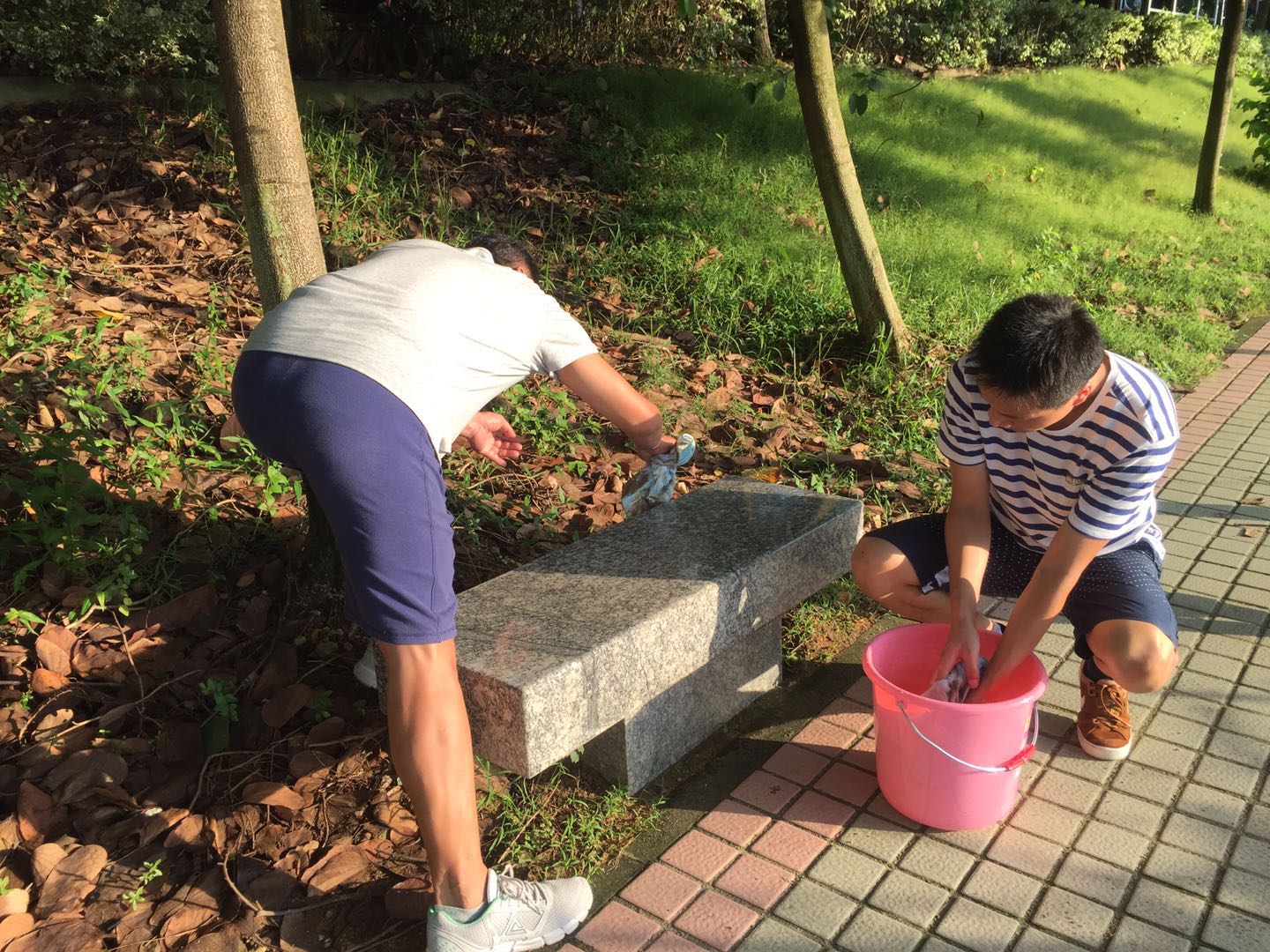为深入贯彻落实“两学一做”学习教育常态化、制度化要求,根据校区党委纪律教育学习月活动的工作部署,9月29日,佛山三水校区学工团委党支部协同各学院党支部师生开展“绿色行动美化校园”活动,其内容之一是对校区内校友捐赠的石桌石凳进行了一次大清洁。