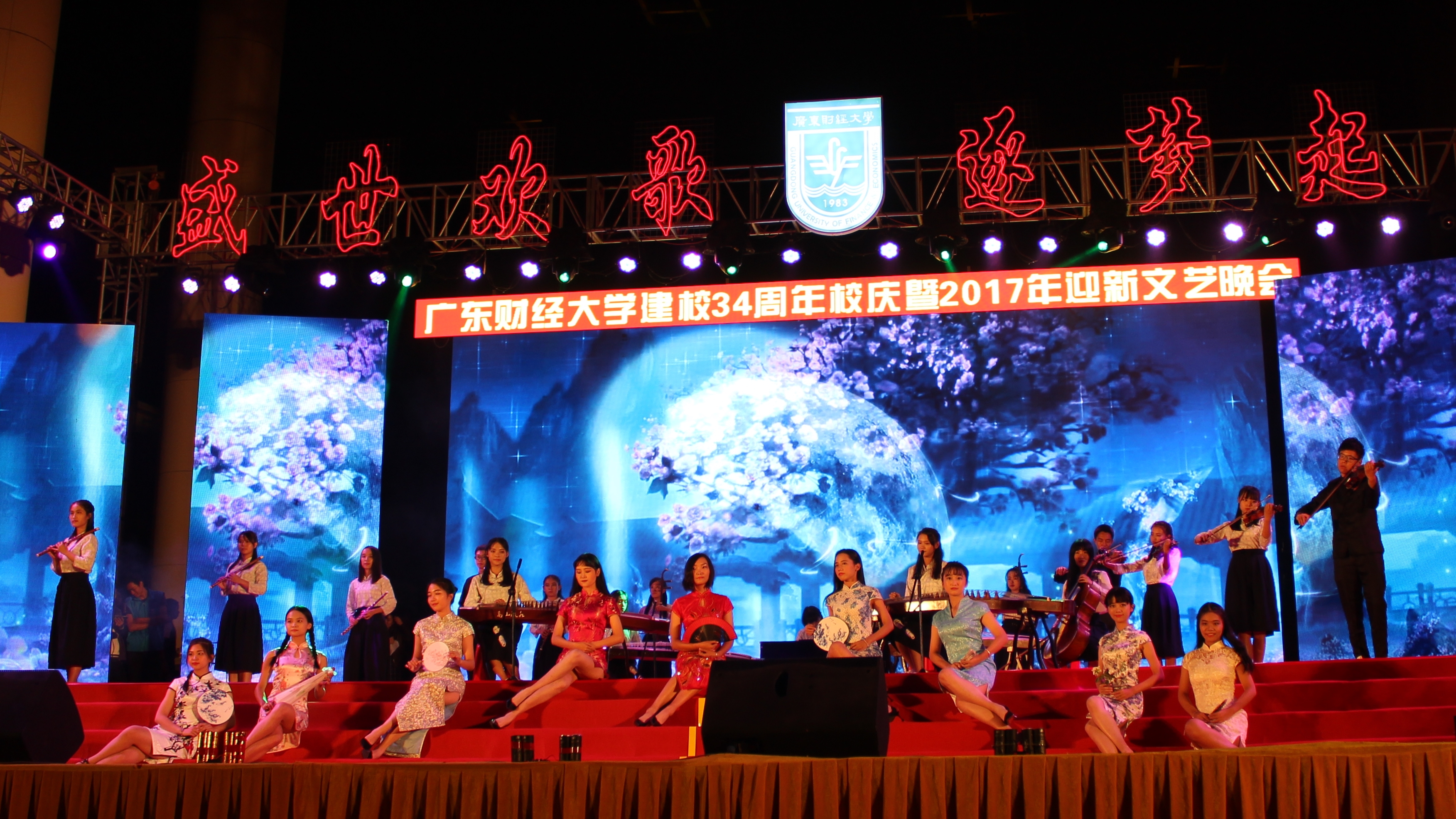 10月24日晚,m88庆祝建校34周年暨2017年迎新文艺晚会在佛山三水校区图书馆前举行。晚会以“盛世欢歌,逐梦启航”为主题,分为上篇“峥嵘岁月”和下篇“梦想赞歌”,为全校师生带来一场视听盛宴。学校党委书记黄晓波、副书记吴琦、副校长陈国栋,佛山市教育局副局长徐旭雁、三水区教育局副局长罗嘉幸,中国电信股份有限公司佛山三水区分公司副总经理罗杰洪、校园中心卢斌、陈铿,学校相关党政部门和各教学院(部)主要负责人出席,并与佛山三水校区、m882017级全体新生共同观看了晚会。