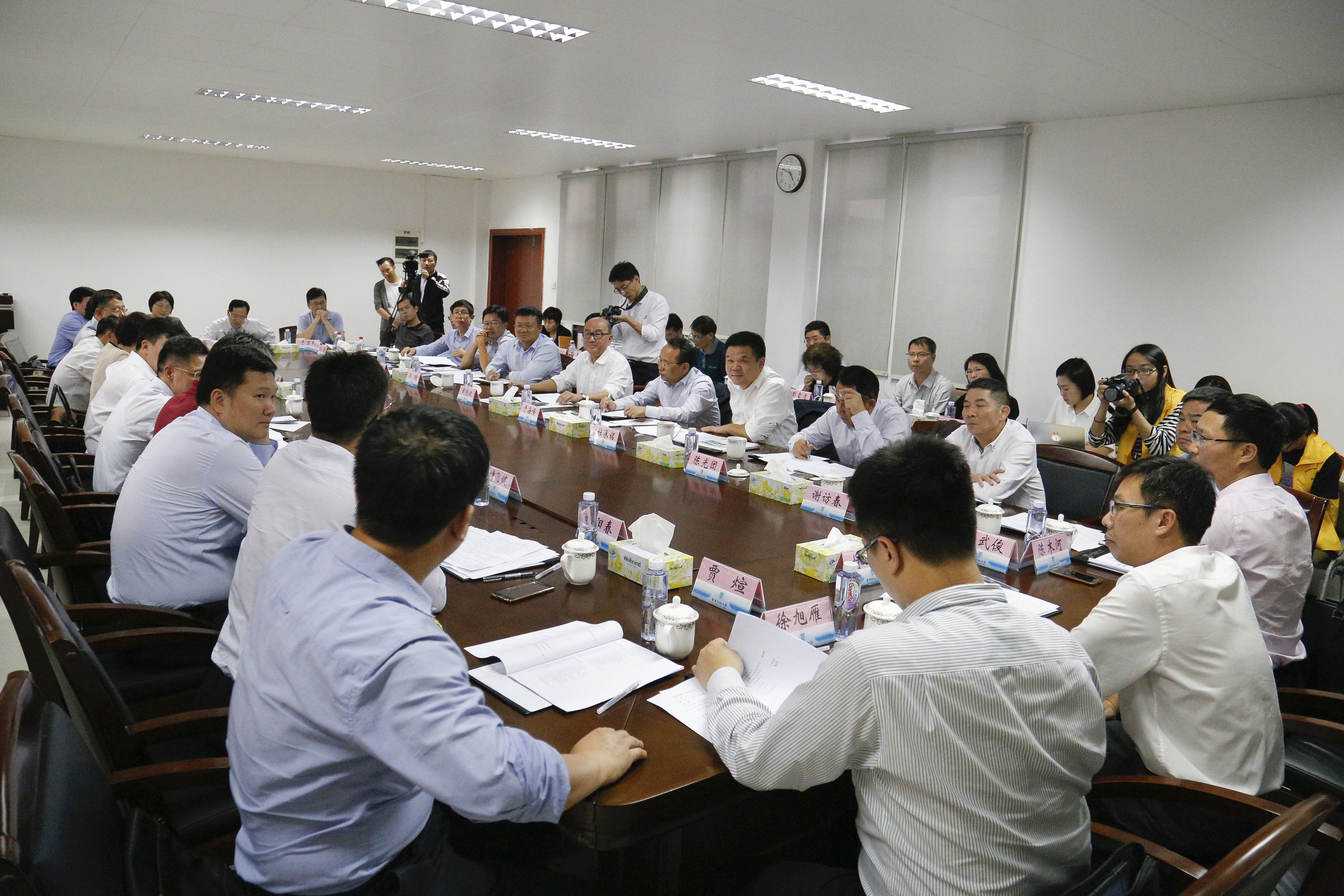 10月25日下午,佛山市与m88推进m88建设座谈会在佛山三水校区召开。佛山市委副书记、市长朱伟,副市长俞进,三水区委书记黄福洪以及佛山市、三水区相关部门负责人,我校党委书记黄晓波、校长于海峰、党委副书记吴琦、副校长杜承铭和陈国栋以及相关职能部门、教学科研单位负责人参加会议。会议由杜承铭主持。