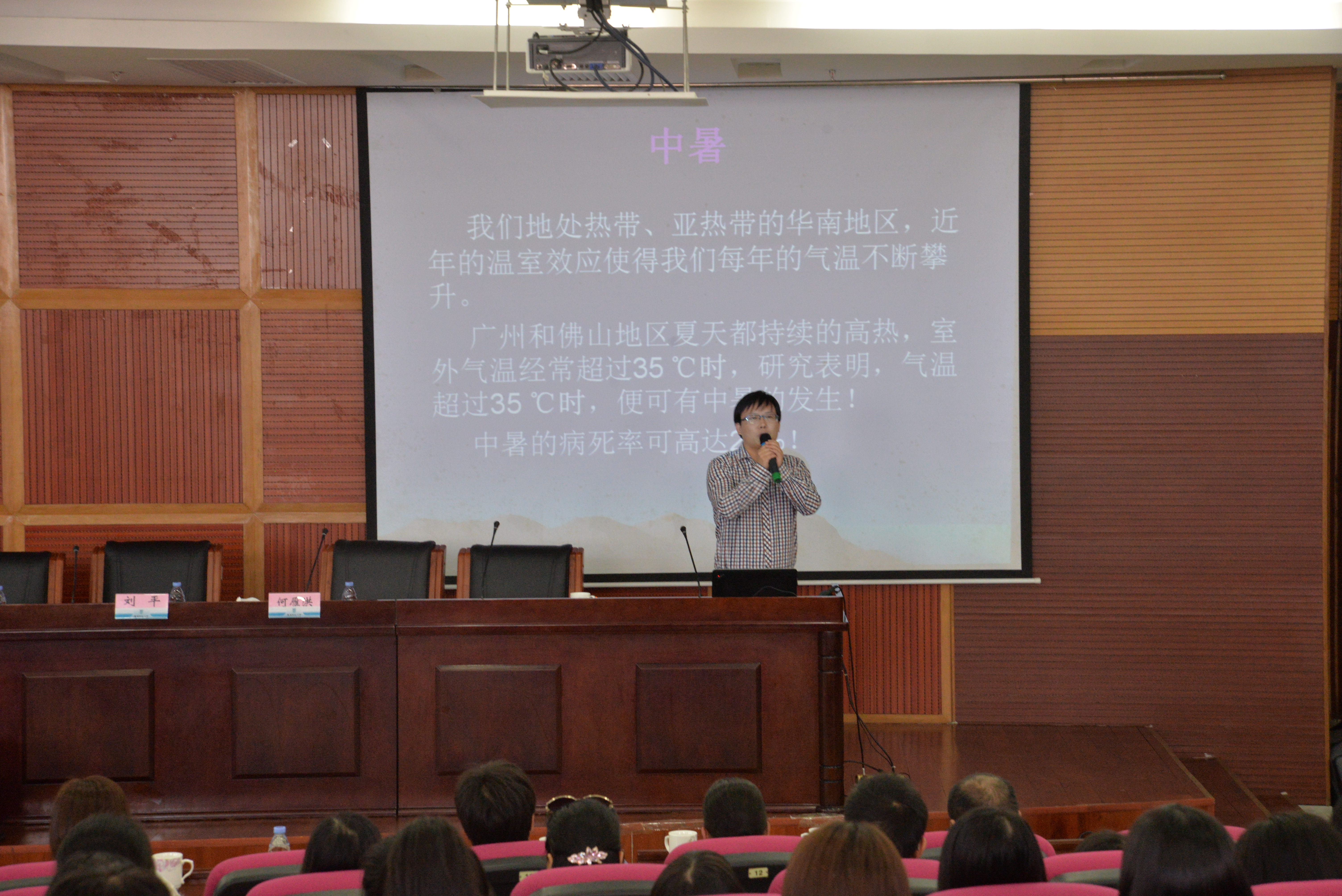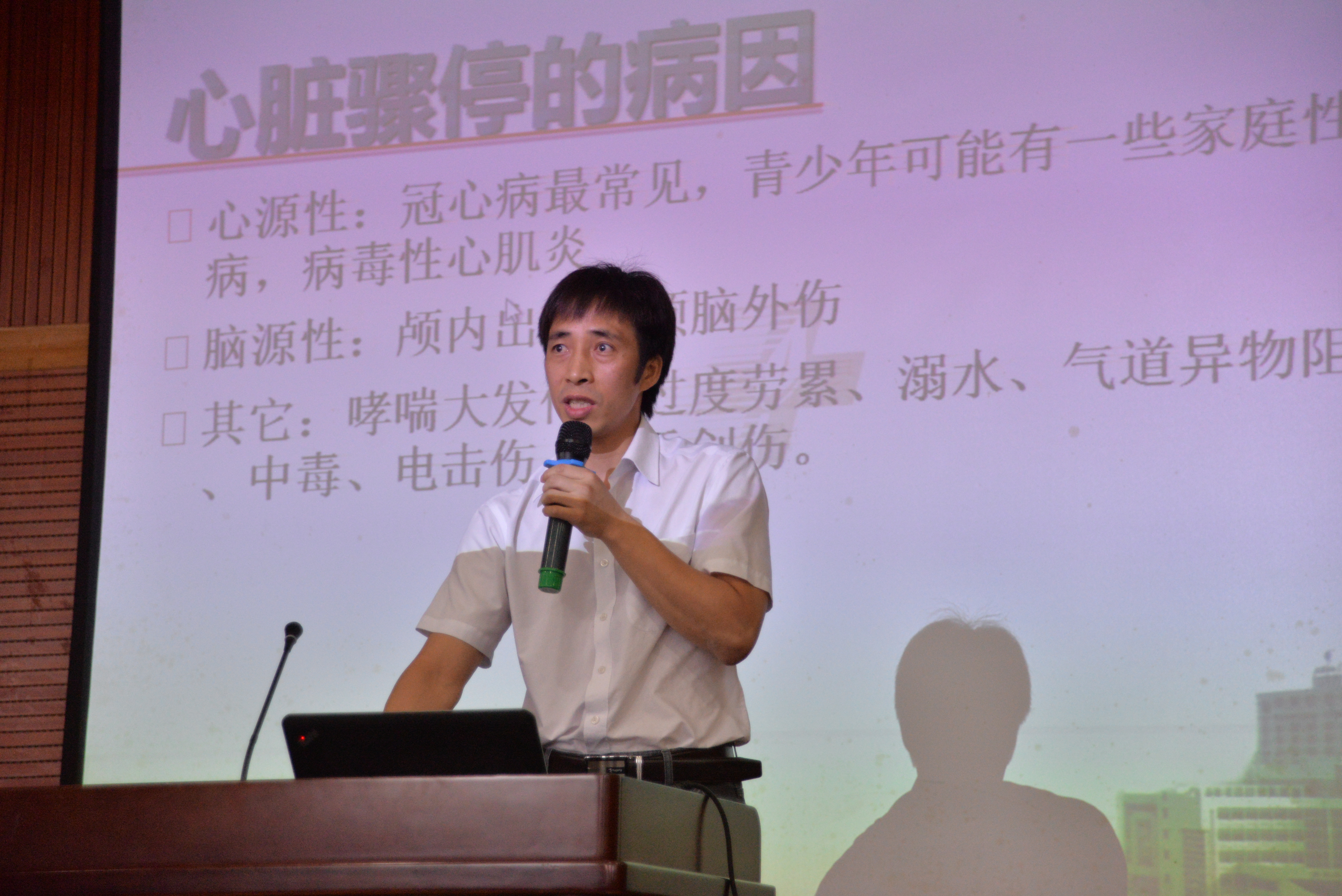 杨溶海首先讲解了中暑与心血管疾病急救的流程。他将中暑的急救方法浓缩成“移、敷、浸、促、擦、服、转”七个字,运用生活实例帮助大家理解复杂难懂的专业术语,在轻松的氛围中加深了听众对中暑急救方法的认识,同时提醒听众注意保养身体,保持健康。