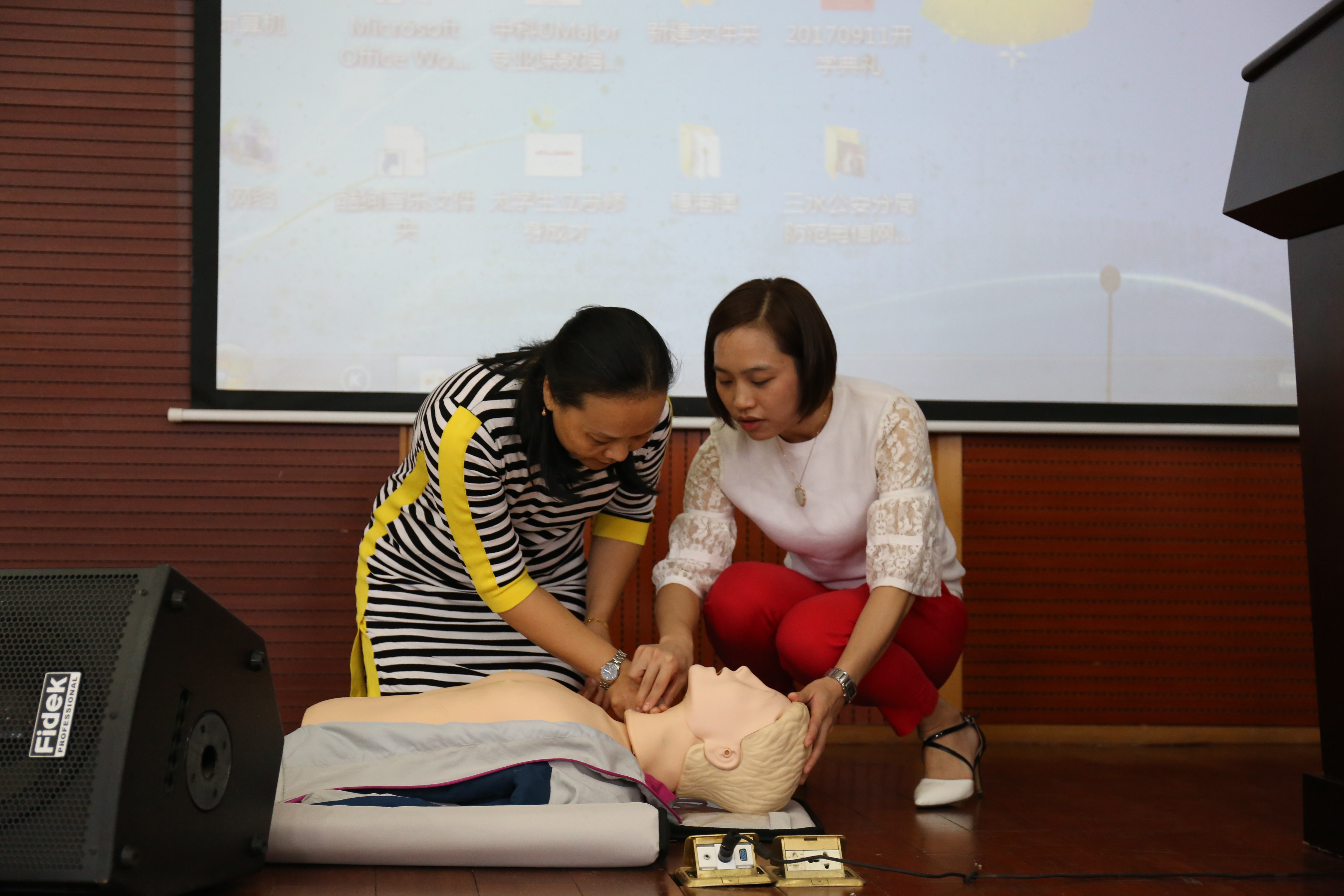 10月31日下午,善水大讲坛之急救技能教学讲座在佛山三水校区学术报告厅举行。讲座由佛山市三水区人民医院急诊科刘平副主任医师、急诊科护士长何雁洪主管护士、广东省中西医结合学会心血管专业委员杨溶海主任医师以及三水区人民医院应急办主任梁松主治医师主讲。校区管委会副主任傅道忠与四百多名师生参加讲座,校区党委副书记钟智主持讲座。