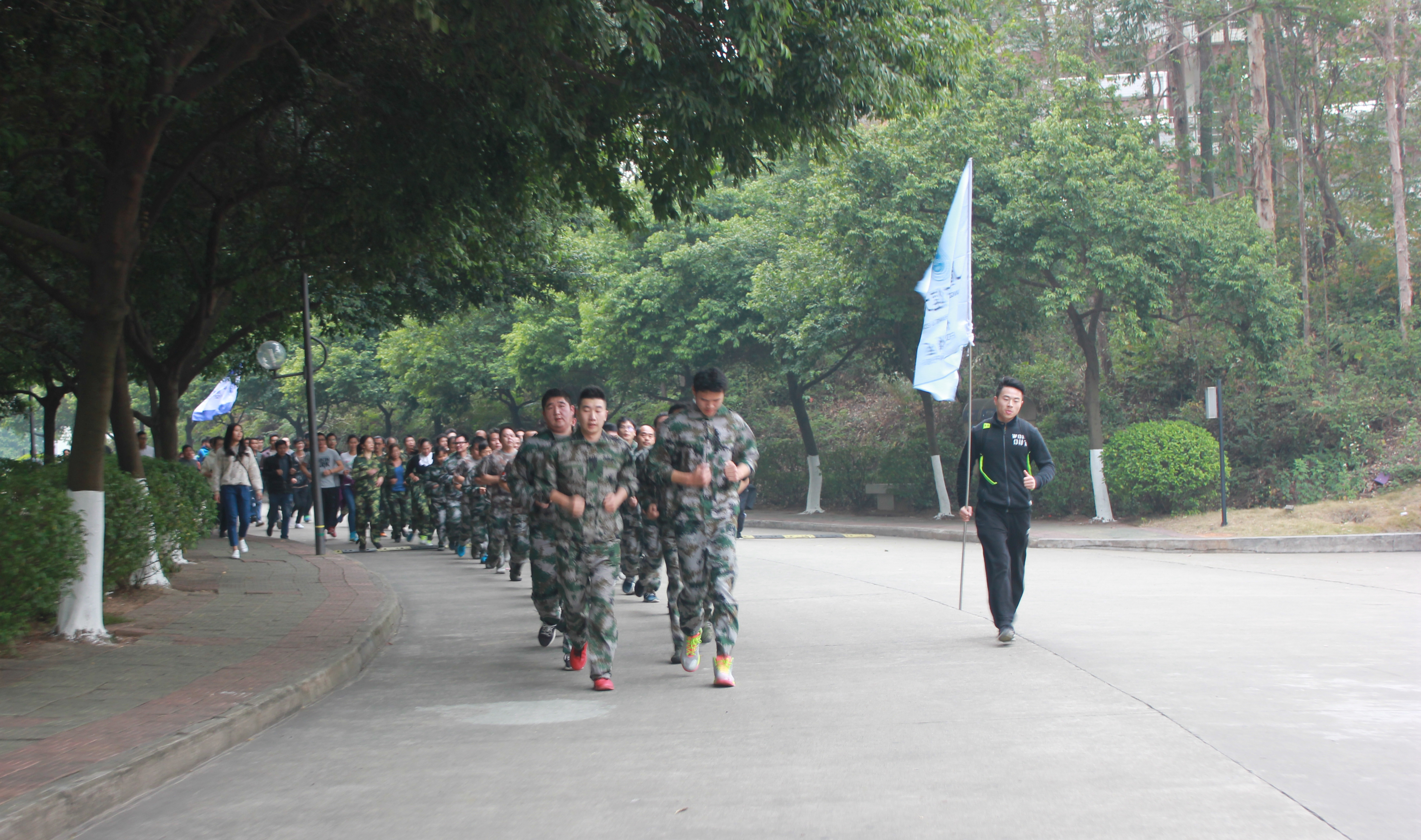 随着一声令下,环校跑队伍由校卫队整齐的方阵开路,其他各部门队伍紧随其后。健康跑从东门开始,沿涟湖外侧,经中心花园,至第二饭堂,教师公寓,回到东校门结束,全长约2000米。