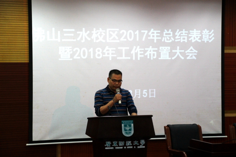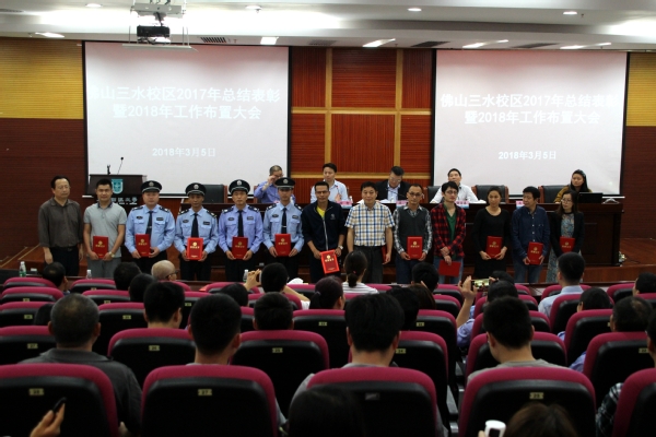 3月5日下午,佛山三水校区(以下简称“校区”)在学术报告厅召开2017年总结表彰暨2018年工作布置大会。校党委副书记、校区管委会主任吴琦,校区全体管理岗及受表彰人员200余人与会。校区党委副书记钟智主持会议。