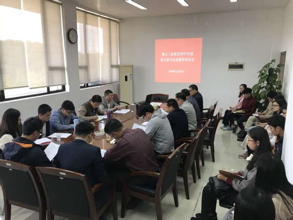 3月20日下午,佛山三水校区党委在校区第二会议室召开2017年度党支部书记述职评议会。校区党委书记谢访春、副书记钟智,校区教工党支部书记、学生党支部书记及党员代表参加了会议。会议由钟智主持。