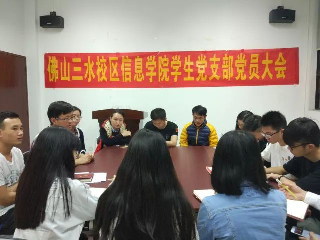 3月13日下午,佛山三水校区信息学院学生党支部召开全体党员大会,学习习近平总书记在广东代表团的重要讲话精神。会议由支部书记黄东同志主持。