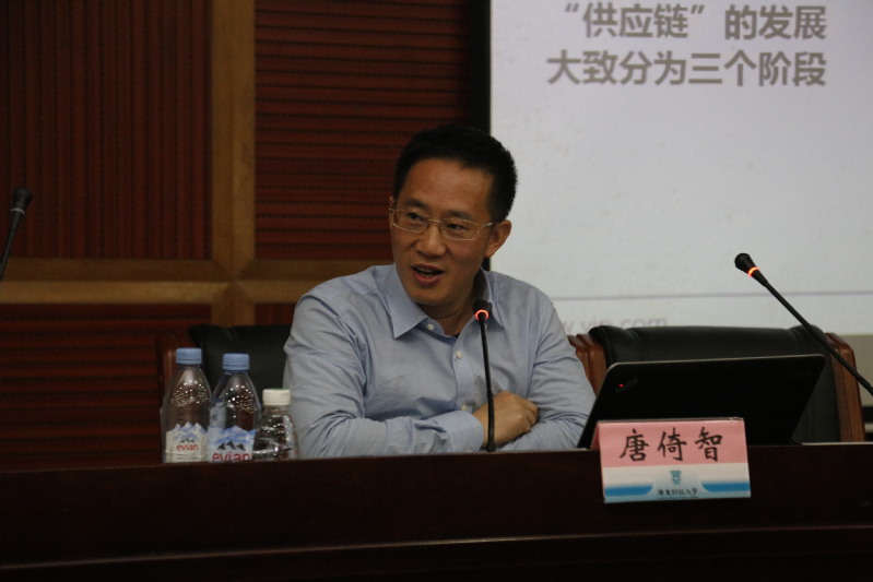 唐倚智先从散文“形散而神不散”的特点引入,利用供应链在日常生活中的例子向我们提到关于供应链的知识,介绍了供应链的起源、定义及发展,让大家了解到供应链的发展大致分为内部整合的供应链、外部整合的线性供应链和外部整合的网状供应链三个阶段。他详细讲解了供应链的目标——六个Rights,即正确的商品、正确的时间、正确的数量、正确的价格、正确的状态以及正确的地点。他强调,供应链的目标,就是顾客所需的正确的商品,能够在正确的时间,按照正确的数量、正确的价格、正确的状态,送到正确的地点,并使总成本达到最佳化,这六者的关系密不可分。
