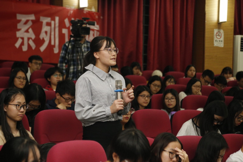 在观众提问环节中,同学积极提问,得到了唐倚智的赞赏和肯定并逐个做了解答。他强调,目前来讲,人力资源非常重要,相关专业的毕业生,要“有两把刷子”,即有一定的人际交往能力、外语能力等,将来才会所作为。他还表示,非常期待与我校接下来的合作。