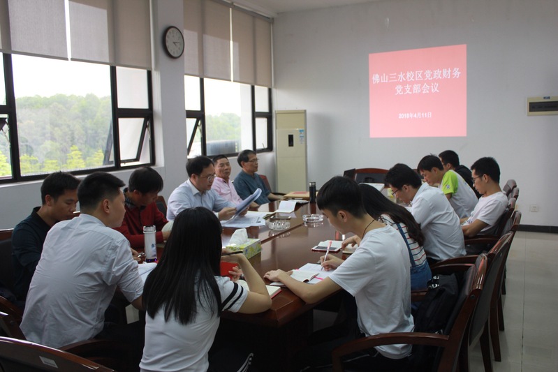 4月11日下午,佛山三水校区(以下简称“校区”)党政财务党支部于厚德楼507召开党支部会议,集中学习宪法知识及景李虎同志在全省教育系统全面从严治党工作视频会议的讲话,并对支部预备党员转正事宜进行了讨论。会议由党支部书记刘金水同志主持。