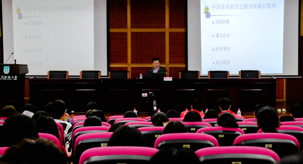 在第二部分“大历史视野下的20世纪中国革命”中,围绕“革命”一词,赵立彬讲解了辛亥革命时期首刊《民报》的意义在于:“输入革命”与点燃了无产阶级革命的星星之火,并简要介绍了同时期社会各阶层的爱国救亡运动。他指出,这一切表明,中国共产党领导的新民主主义革命的胜利与中国当时所处的环境、所面临的重大机遇密不可分。