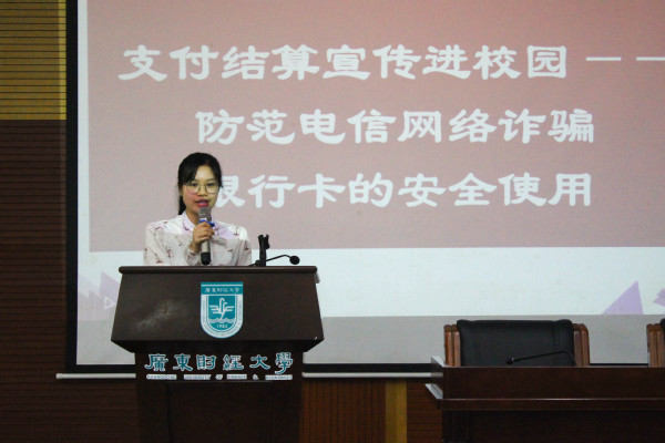 此次活动不仅通过播放《打击非法集资 共创社会和谐》及《辨别非法金融广告》宣传片普及同学们金融安全方面的常识,还特意邀请就职于浙商银行佛山分行的蔡文婷为同学们作《防范非法校园金融》专题讲座;就职于中国人民银行三水支行的许林欣作《银行卡的安全使用》专题讲座;广东省法制学校柯老师作《练就火眼金睛 守护无邪青春》专题讲座。通过这些专业人士的讲解让同学们在日常生活中提高防范意识,自觉远离邪教、黑恶势力,抵制非法校园金融行为,构建平安和谐校园。