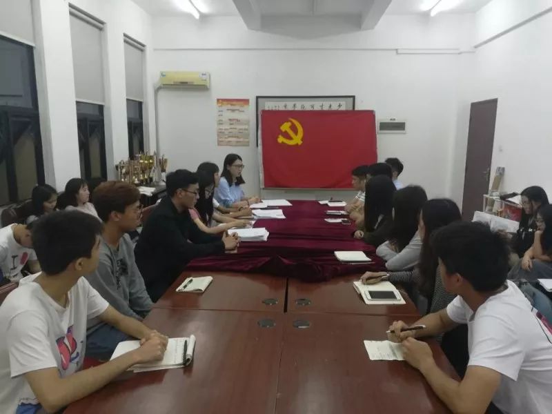 2018年4月27日晚上7:00,佛山三水校区财政税务学院学生党支部在行政楼329召开接受预备党员的支部通表大会,出席会议有党支部书记郑晓丹老师、宣传委员李威威老师、组织委员陈晓芳同志、预备党员9名以及发展对象9名。