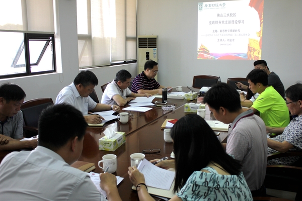 5月24日上午,佛山三水校区(以下简称“校区”)党政财务党支部在校区第二会议室组织集中理论学习。校党委副书记吴琦、校区党委书记谢访春、佛山现代服务业研究院院长林仲豪以一名普通党员的身份参加了学习。党支部书记刘金水主持学习分享会。