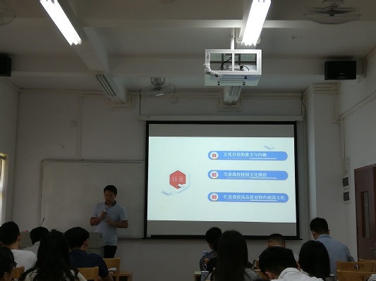 钟智从“文化自信的意义与内涵”、“当前我校校园文化现状”及“打造我校高品质有特色校园文化”三部分给联组师生党员做专题报告。讲座从文化的意义切入帮助党员了解文化内涵,体会文化自信的底蕴及其重要性。接着带领大家把目光自然转到大学校园文化,从内部环境与外部环境两方面谈及我校当前校园文化建设中存在的挑战,引起大家的关注与思考。最后,契合广财精神、校训、办学理念、治校方略、办学特色等,对如何打造我校高水平、有特色的校园文化提出了思考与建议,勉励全体党员,特别是政治辅导员在工作中要有意识、有创造性地融合广财精神建设好广财校园文化,助力广财学子成长成才!
