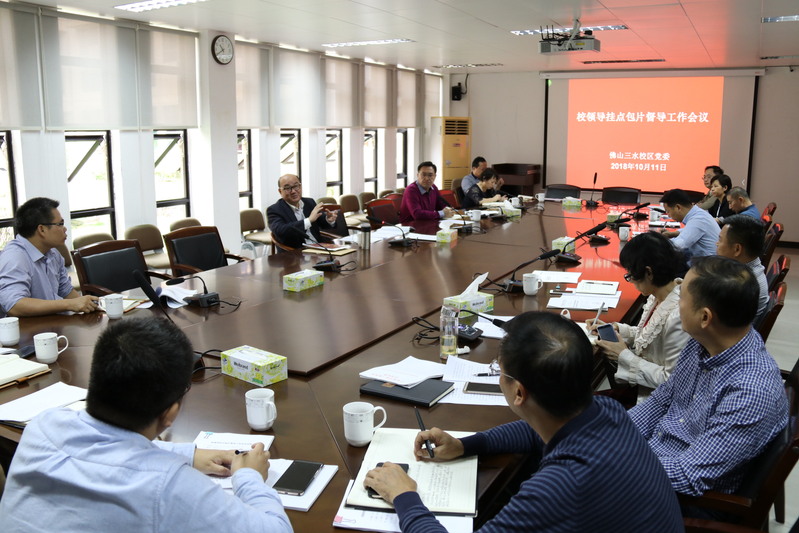 为进一步推动佛山三水校区落实(下称“校区”)《广东省加强党的基层组织建设三年行动计划(2018—2020年)》(下称《三年行动计划》)及开展深调研工作,校党委书记黄晓波于10月11日到校区开展督导和调研工作。校区党委委员、全体教工党支部书记、学生党支部书记及党办校办相关工作人员参加督导会。校区管委会班子成员及各部门负责人,国际商学院、文化创意与旅游学院负责人及教师代表,佛山现代服务业研究院、研究生院佛山分院负责人及党办校办相关工作人员参加了主题为“学校治理体系现代化”深调研会议。