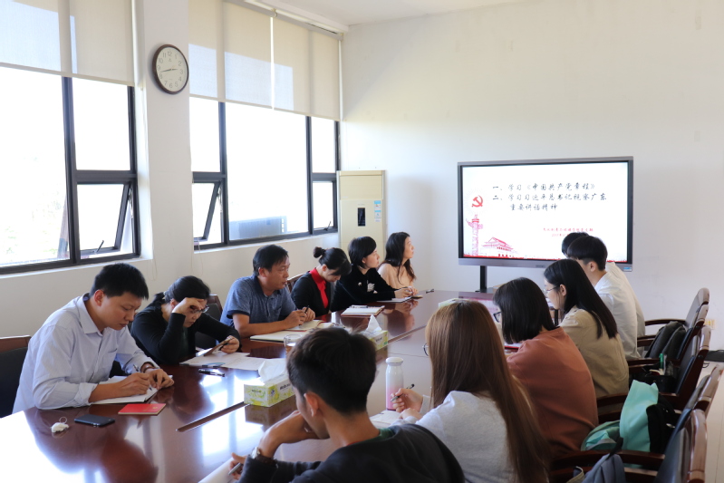 10月30日下午,文化创意与旅游学院党支部于厚德楼507深入开展理想信念学习教育活动,集中学习《中国共产党章程》及习近平总书记视察广东重要讲话精神。会议由党支部书记王青主持,学院全体师生党员及发展对象参加了此次活动。