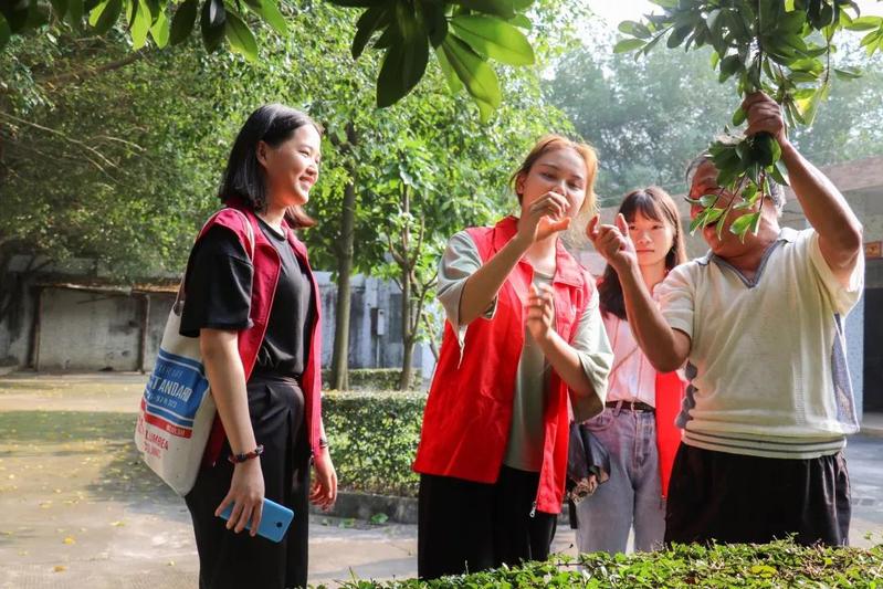 午后的疗养院在志愿者们到来之后气氛渐渐活跃起来,大家按照安排分成两个小组,一部分志愿者陪伴老人们聊天,院子里时不时传来欢声笑语,有位老人虽然没有了手指,但是下起棋来毫不含糊,连连得胜。而骆爷爷则在一旁向大家介绍了院子里的黄皮果树、龙眼树和人参果树。手巧的细苏伯还给我们送了他自己做的手工。