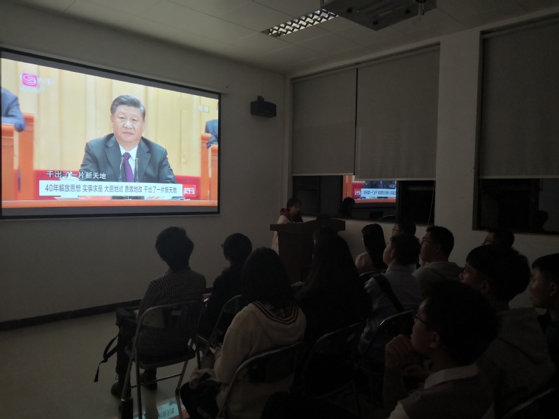 为深入学习贯彻习近平总书记在庆祝改革开放40周年大会上的重要讲话精神,进一步感悟中国改革开放40年来取得的辉煌成就,2018年12月23日晚,校区党建学社成员于厚德楼532会议室开展了关于改革开放四十周年习近平总书记重要讲话的学习讨论会。本次会议由校区党建学社成员林雅丽主持。会议共分为三个部分,分别为观看习近平总书记庆祝改革开放40周年讲话视频、自由探讨改革开放思想和成就以及大会总结。