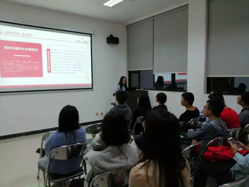 2019年3月19日晚,m88佛山三水校区党建学社(以下简称“学社”)在行政楼532召开关于《粤港澳大湾区发展规划纲要》(以下简称《规划纲要》)的专题学习会议。本次会议由学習部部长邱红升主持,学社内部成员参加本次会议。