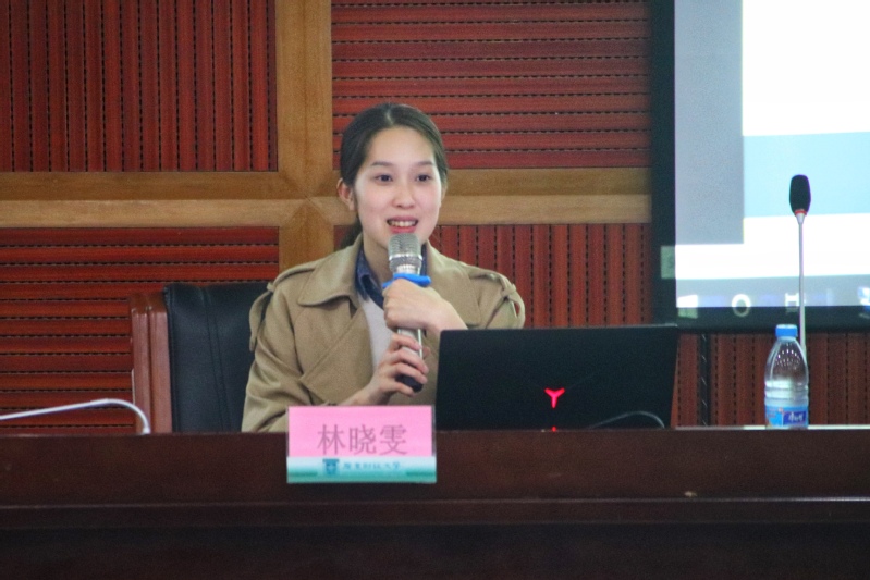 林晓雯首先分享了她担任广东省学联执行主席、校学生会主席等学生干部的经历和感悟。她以“尝试”、“坚持”、“传承”和“超越”作为自己学生干部生涯前、中、后期关键词的经历,并从中总结出学生干部应当以发展的观点看问题,培养求实、辩证的思维。她建议学生干部在追求自身的职业生涯规划过程中应先明确职业定位,再评估就业机会,最后择优选择就业目标,本着为同学们服务的宗旨脚踏实地投入工作。