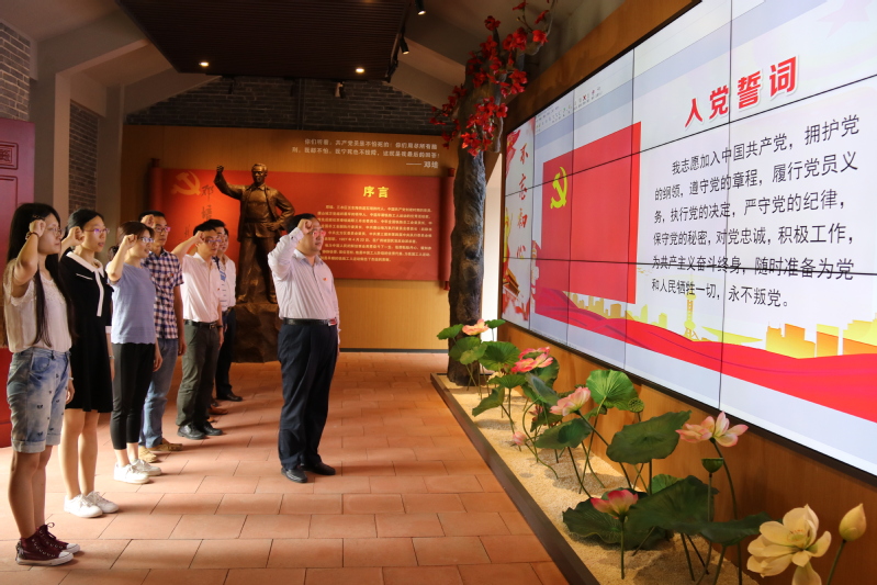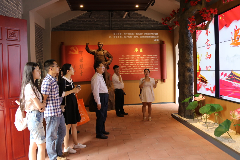 来到邓培烈士故居,在工作人员声情并茂地讲解中,支部人员对邓培烈士有了更直观、全面的认识。故居中珍贵的历史照片、激扬的文字纪实、真实的先烈遗物和生动的影像资料,再现了那个惊心动魄的年代,深深触动了在场每个人的心灵。邓培烈士将一生奉献给中国人民的解放事业,在他身上,大家感受到革命精神的光荣与伟大。面对鲜红的党旗,面对英勇牺牲的革命烈士,支部党员郑重举起右手,重温入党誓词,再一次感受身为中共党员的责任和使命。