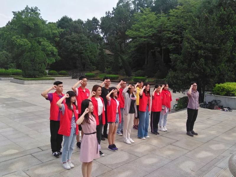 随后,全体成员向纪念碑进行一分钟的缅怀先烈并鞠躬致敬,表达对革命烈士的敬意。紧接着,全体成员集体面对党旗,在法学院学生党支部书记郑欣颖的带领下高举右手,庄严宣誓,重温入党誓词。英烈虽逝,但他们为真理和正义事业献身的精神却永世长存。英雄们用鲜血与生命换来了祖国的和平,今日,我们更要珍惜这来之不易的生活,努力拼搏,继承先烈的遗志,以实际行动告慰英魂。