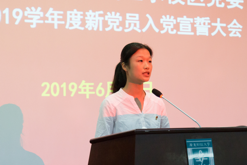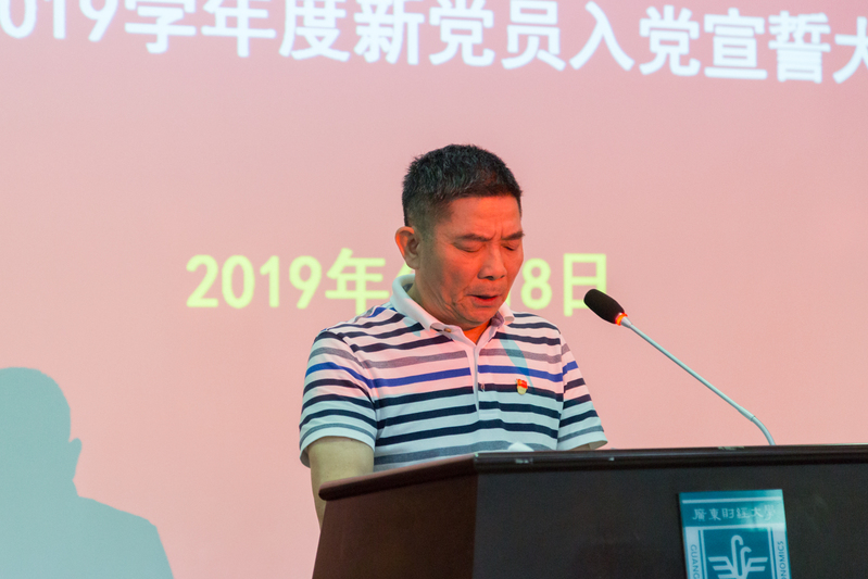 随后,谢访春发表讲话。首先,谢访春回顾了党的光辉发展历程和取得的伟大成就。为激励广大新党员,谢访春提出了三点希望:一是坚定理想信念,牢记初心使命。希望广大新党员牢记入党誓词,树牢“四个意识”,坚定“四个自信”,坚决做到“两个维护”,用习近平新时代中国特色社会主义思想武装头脑。二是要只争朝夕,努力奋斗。以时不我待、只争朝夕的精神投入到工作和学习中去,努力践行全心全意为师生服务的宗旨,全力承担新时代赋予的历史使命。三是要爱校如家,共建美好校园。作为广财的一份子,广大师生党员要用实际行动践行校兴我荣的宗旨,为学校和校区的发展作出自己应有的贡献。