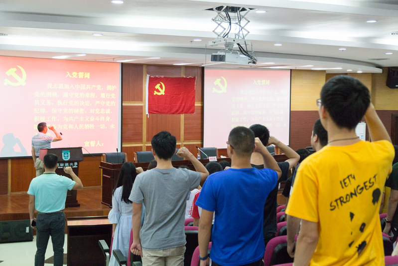 6月18日下午,佛山三水校区党委在校区学术报告厅举行新党员入党宣誓仪式。校区党委领导、2018-2019年度新党员、党支部书记参加了宣誓仪式,校区党委副书记钟智主持宣誓仪式。