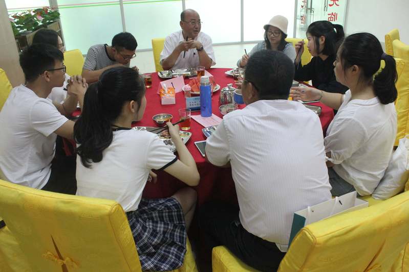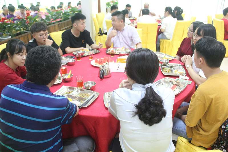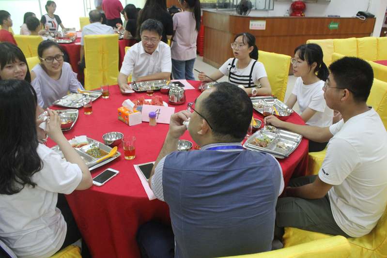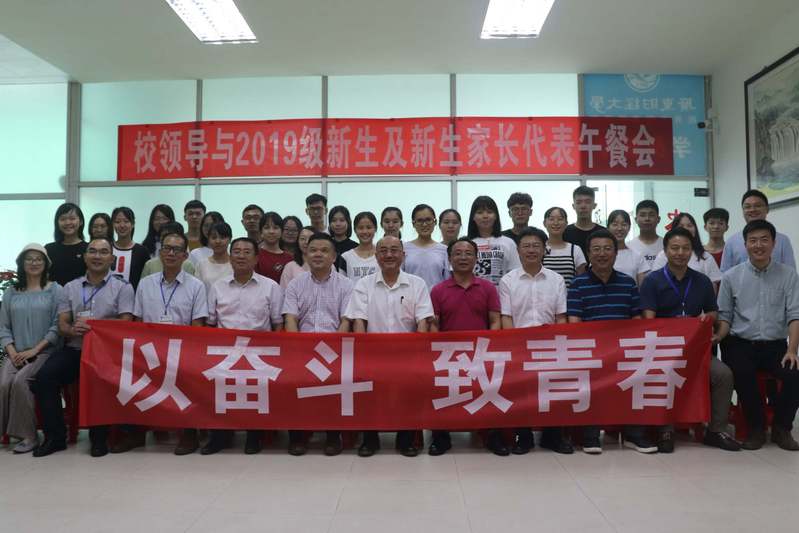 9月2日中午,校领导与2019级新生及新生家长代表午餐会在佛山三水校区雅食园三楼举行。校党委书记黄晓波、校长于海峰,副校长杜承铭、陈国栋等领导与2019级新生及家长代表共进午餐,座谈交流。