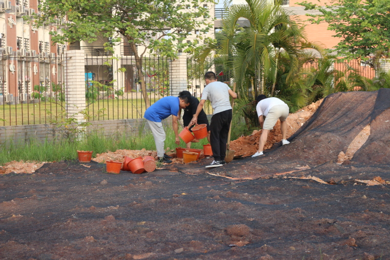 在支部书记陈发荣的带领下,大家撸起袖子干起来了,锄头、铲子在握,小桶在手,有的铲泥、有的运送、有的填槽,团结协助,相互配合,大家干的如火如荼,一点没有停歇的意思。看着一个个花槽被填满,大家洋溢着满意的笑容,往后种上鲜花,定是片美好风景。