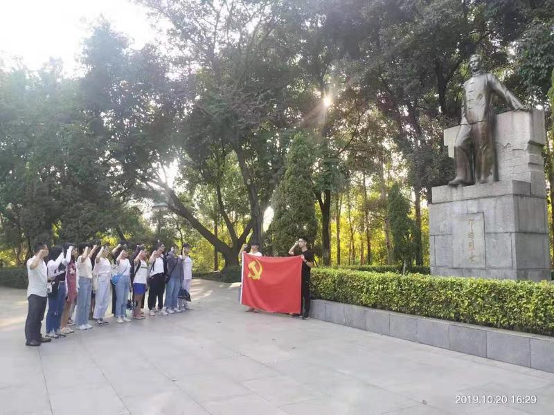 为了弘扬爱国主义精神,进一步加深学生对党的理念的理解,让学生切身体会党的优秀革命先烈的精神和事迹,2019年10月20号下午,人文学院党支部组织了一次课外学习活动。在柯佳佳的带领下,12名发展对象和8名积极分子一起参观了位于三水西南公园的邓培烈士纪念碑,忆往昔峥嵘岁月,筑明日中国之梦。