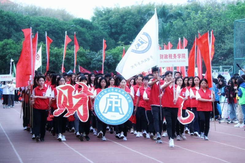 在飒爽的秋风中,大旗挥起,校区财税学院方阵队迈着有力的步伐向我们走来。运动健儿们斗志昂扬,积极向上,展现青春风采。