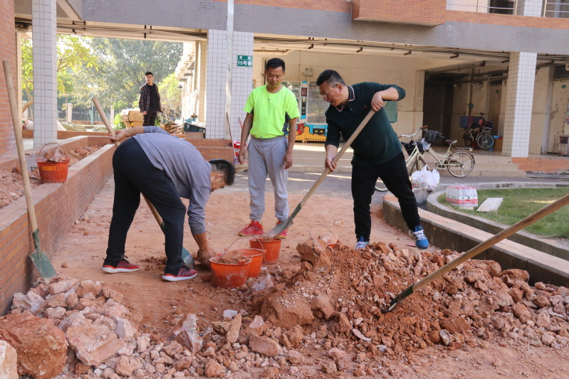下午3点,大家准时到达活动目的地李园15栋。在党政办老师的引领下,大家兴高采烈地开展本次义务劳动工作——为楼道走廊的花圃填土。