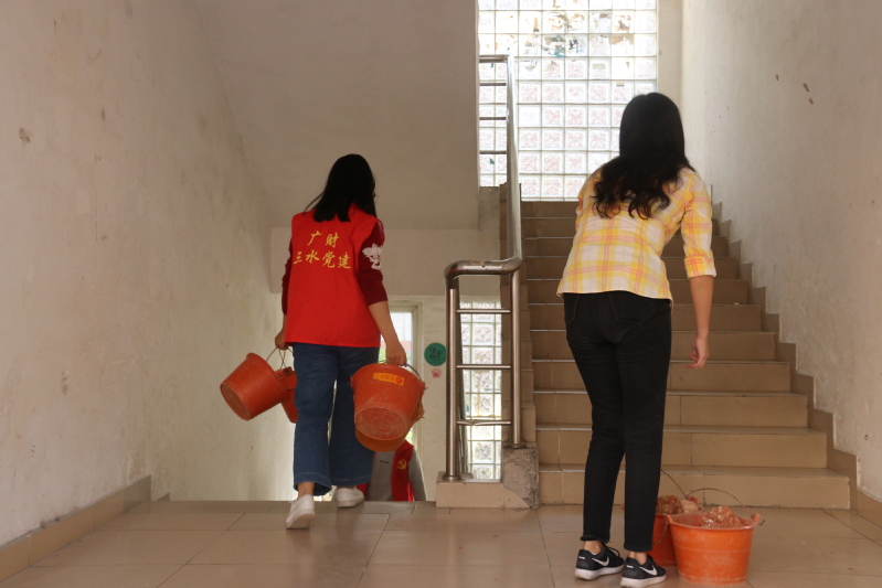 为深入贯彻落实主题教育工作要求,11月20号下午,校区党政办党支部联合广财三水党建学社到李园15栋开展义务劳动活动,学工办主任、学工团委党支部书记陈发荣给予本次活动大力支持。校区党委常务副书记、管委会常务副主任冯东海以普通党员的身份参加了本次义务劳动。参与本次活动共有21人。