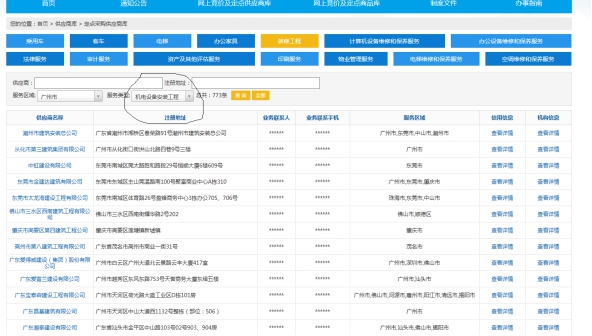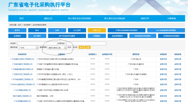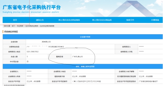 3、提供投标人在“广东省电子化采购执行平台”包含投标人单位的服务范围及服务类型信息的页面截图并加盖公章(参考附件1)。