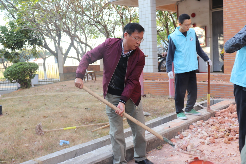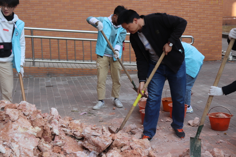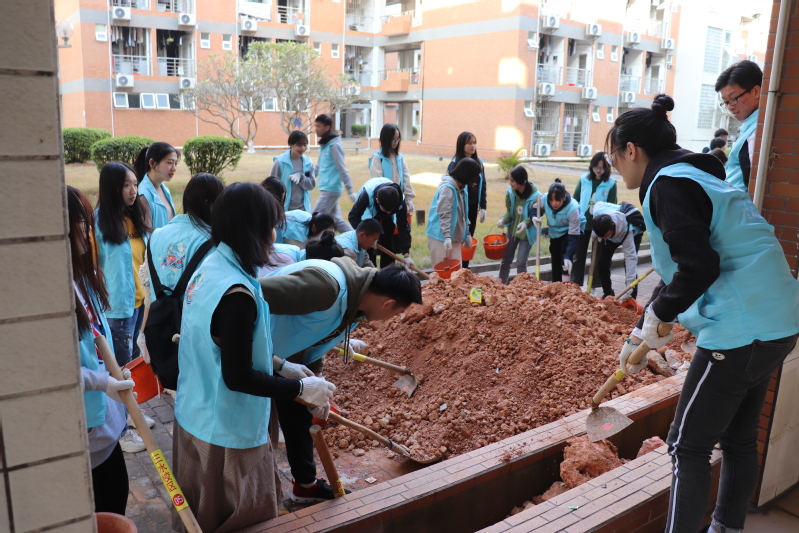 在本次志愿服务中,各位志愿者们鼓足干劲、分工合作,一起搬土、装土、填土、松土,大家乐此不疲。堆叠如山的几座土堆在大家协调有序地努力下一点一点地下降,各层花圃也逐渐填满。各位志愿者充分发挥不怕脏、不怕苦、不怕累的精神,并在劳动的同时呼吁周围的同学共同爱护校园环境。