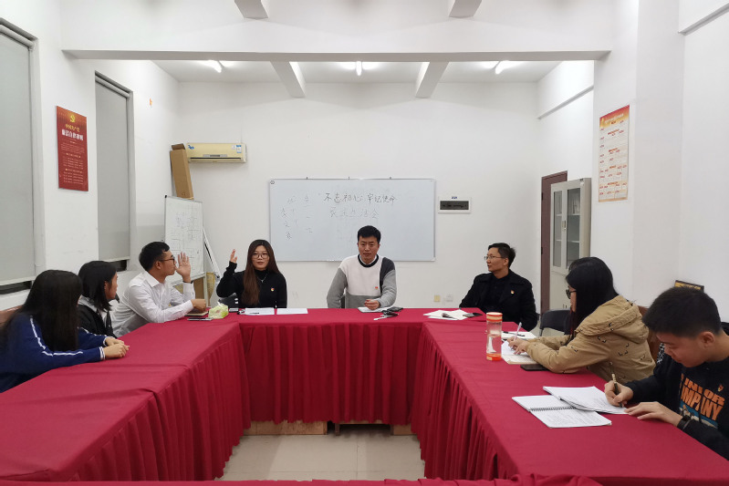 会上,文闻汇报校区统计与数学学院学生党支部2019年度工作总结对照检查发言,报告从加强思想建设、贯彻落实为人民服务的宗旨和工作中存在的不足三个方面进行。为达到“以评促改、以评促建”的效果,支部党员各抒己见对支部工作进行评议,对改进党支部工作提出了切实的意见建议。如加强密切联系群众,主动了解同学学习、生活方面的困难和需求等