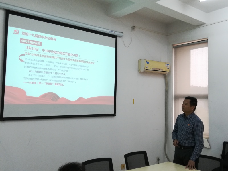 1月13日下午,学工团委党支部在厚德楼402会议室举行党的十九届四中全会精神专题学习会议,会议由党支部书记陈发荣主持并领学。