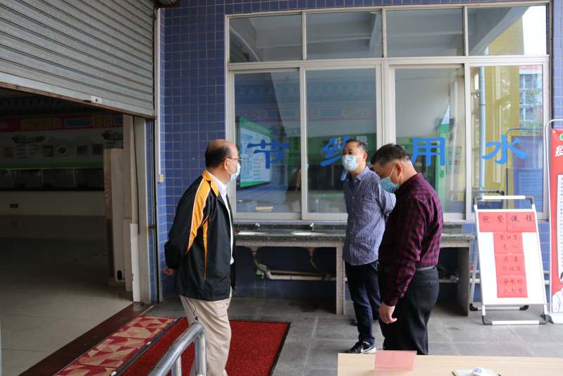 黄晓波、于海峰接受体温测量后进入校园,先后走访了校区东门、教师公寓、饮食中心、在建的国际商学院大楼及有为书院学生公寓等场所值班室。每到一处,黄晓波、于海峰都与值班人员亲切交谈,对他们的辛勤付出表示感谢。提醒大家在坚守岗位的同时,一定要注意个人防护;要求大家进一步严格按照上级、属地政府和学校的各项要求,切实做好校园管理工作,将学校各项疫情防控和服务保障措施落实到位。
