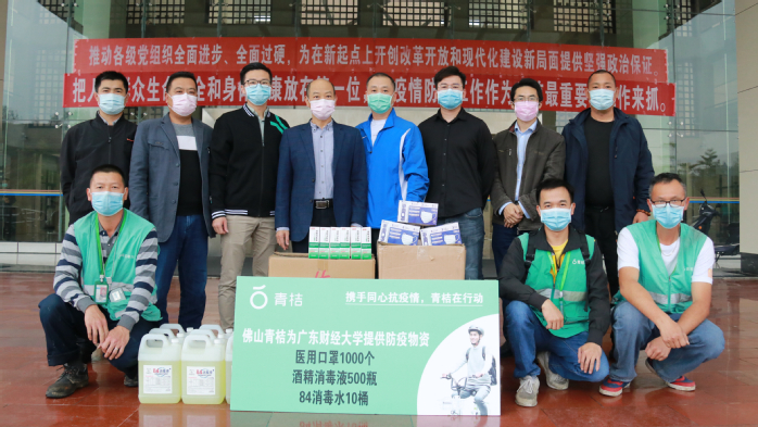 校企协作,共抗疫情,3月18日,青桔单车向佛山三水校区捐赠防疫物资,校区管理委员会副主任陈镇恭代表校区接受了物资捐赠。