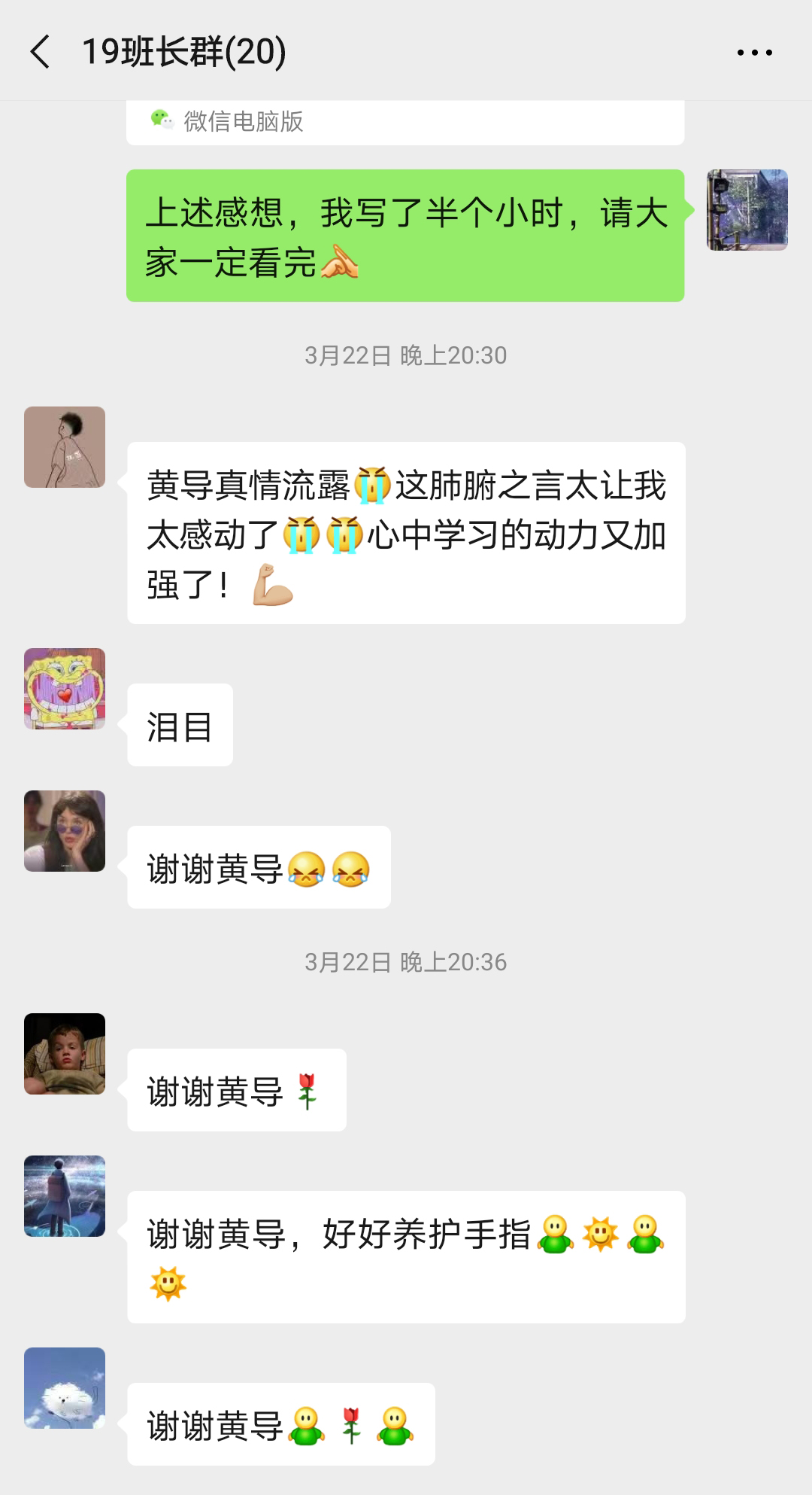 疫情面前,方显责任与担当,像黄哲老师一样的辅导员还有很多,正是我校全体教职员工的“真心”引导,多措并行,为疫情期间网络教学模式的顺利开展提供了有力的保障。