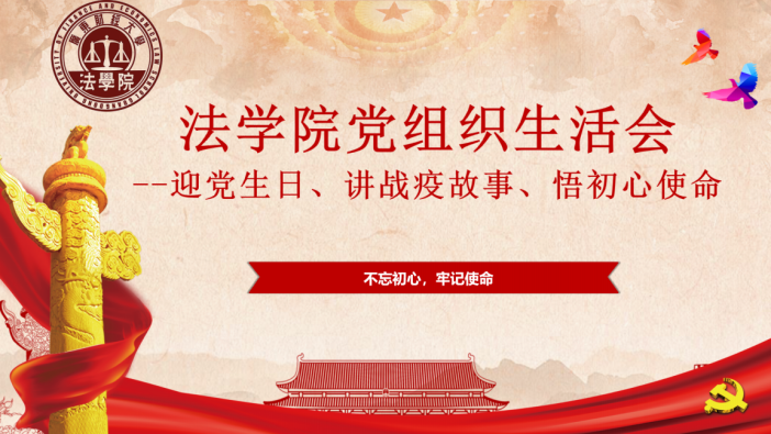为贯彻落实学校制定的“四个一”行动方案,缅怀党史,重温党词,深刻理解不忘初心、牢记使命的价值意蕴,向身边榜样学习。校区法学院学生党支部于7月2日晚20:00召开“迎党生日、讲战疫故事、悟初心使命”的线上组织生活会。