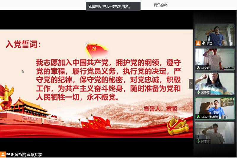 接着,与会全体党员在黄哲的领誓下,右手握拳,重温入党誓词。