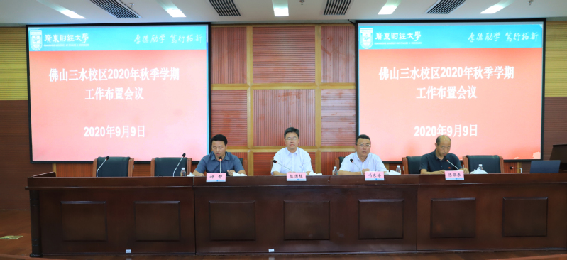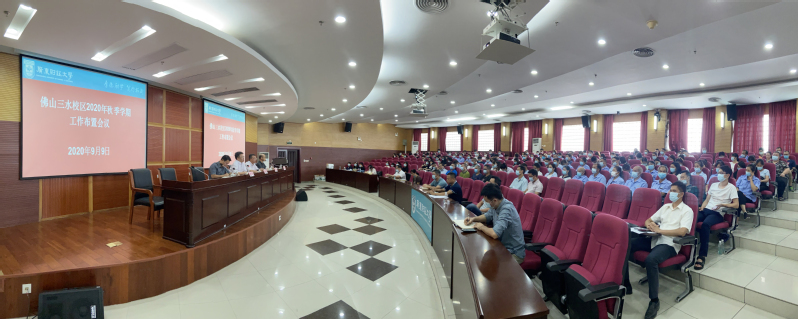 9月9日下午,佛山三水校区全体教职工在图书馆学术报告厅召开2020年秋季学期工作布置会议,陈国栋副校长出席,校区全体职工及饮食服务中心、物业公司管理人员代表参加了会议,会议由校区党委常务副书记、管委会常务副主任冯东海主持。