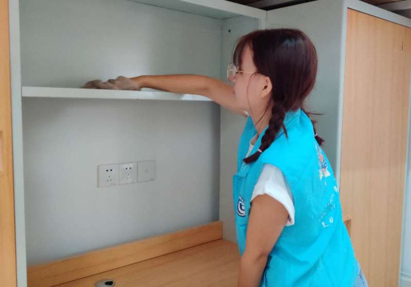 在本次爱国卫生活动中,各位志愿者们热情高昂。在前期明确的分工安排下,全体志愿者各司其职,或扫地、拖地、擦拭桌椅等。经过近一个小时的清洁打扫,学院75间新生宿舍焕然一新。同时,各位志愿者对新生宿舍相关设施进行了逐一检查,确保学院2020级所有新生能够顺利入住有为书院。