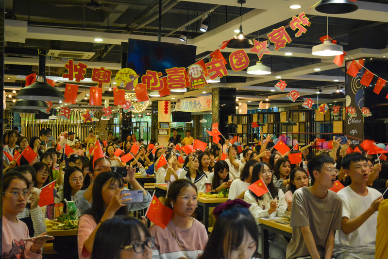 10月3日晚,全体留校学生、教职员工及家属欢聚篮球场观看露天电影——《建国大业》。《建国大业》是2009年上映的一部中国历史电影,该影片讲述了从抗日战争结束到1949年中华人民共和国建立前期发生的一系列故事,突出渲染了浓厚的爱国氛围,是一部充满正能量的影片。在场人员认真观影,十分投入。影片结束后,大家纷纷表达了对革命先烈的崇敬之情,如经济学院杨键禧分享观后感时表示,“这是我第二次观看这部影片了,每次观看这部影片时,我都能通过银幕真切地体会到当时人民的呼声和共产党团结人民的决心,也能够看到新中国的诞生是由无数的革命人士奉献了自己的生命,用鲜血换来了的。每每看完这部影片,我都会更加珍惜现在的和平岁月,因为这段和平岁月是那么的来之不易。”