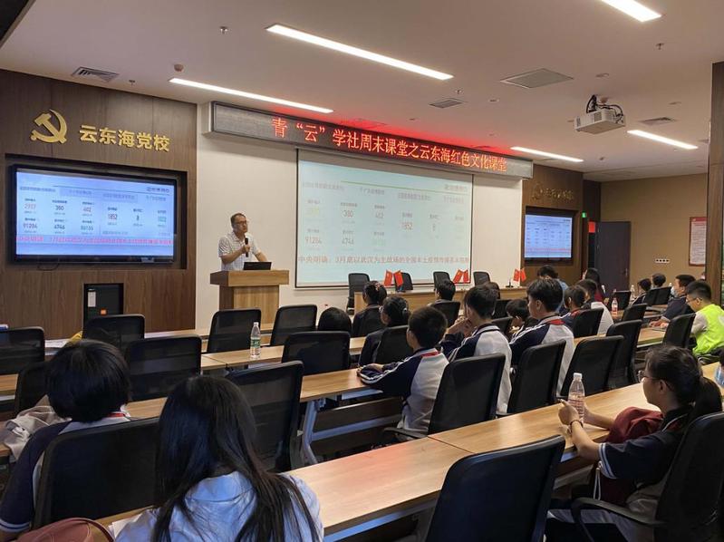10月11日,青“云”学社周末课堂正式开班,m8810名大学生与云东海辖区40多名青少年进行分组结对,分别到邓培故居、云东海街道党群服务中心等红色基地参观学习,感受红色文化的熏陶。