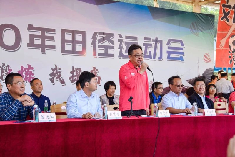 郑贤操书记宣布2020年m88田径运动会开幕。运动员代表黄申奥与裁判员代表袁宾峰分别宣誓。