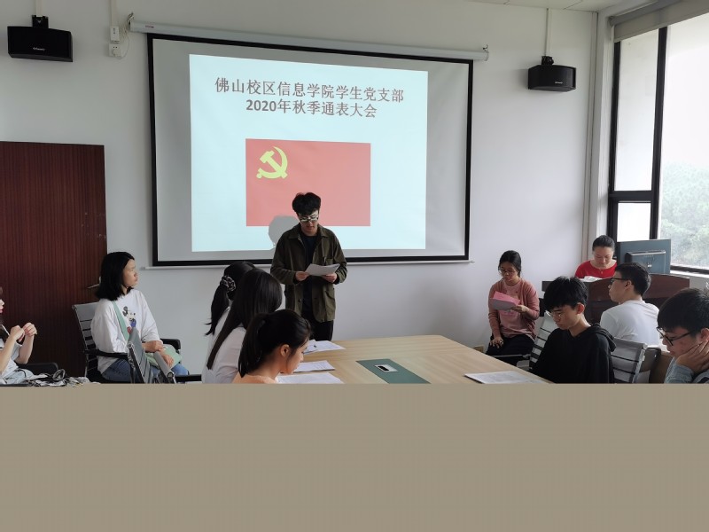2020年9月17日上午,信息学院学生党支部在三水校区厚德楼535举行2020年秋季通表大会,会议由学生党支部书记蔡键菁同志主持,谢琳琳老师、六名入党发展对象以及各班代表参加了本次会议。