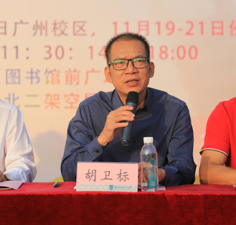 胡卫标介绍本次生涯体验周活动内容。他表示,本次活动在去年的基础上有了更大的创新,今年新增了“职业真探”部分,邀请了华图等8家知名企业单位和近30位优秀校友来为同学们分享有关就业、择业的经验。